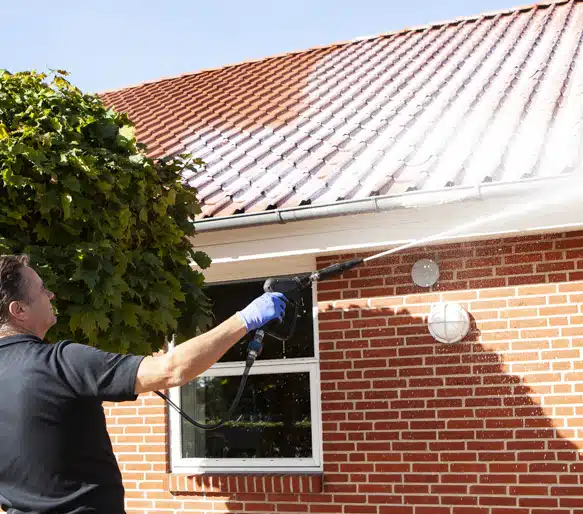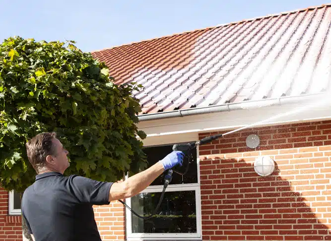 GVservice tilbyder professionel algebehandling. Det betyder at vi kan fjerne alger på fliser, fjerne alger på tag, fjerne alger fra plankeværk og fjerne mos på tag m.m. Med en gang rens af alger fra GVService sætter vi et stop for dine alge problemer.